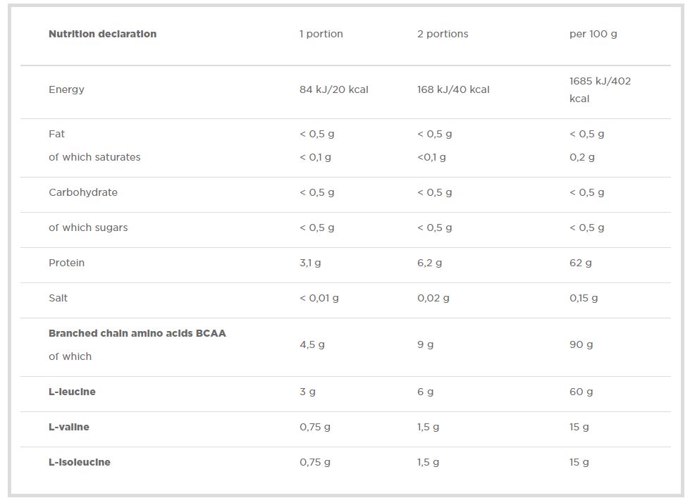 - 4.5 g of subdivision BCAA distinctions per 5 g with disc!