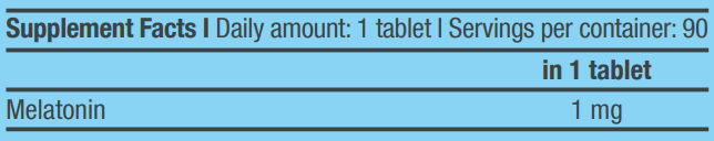 Bulking agents (calcium phosphates, cellulose gel, cross-linked sodium carboxy methyl cellulose), melatonin 0.5%, anti-caking agent (magnesium salts of fatty acids).