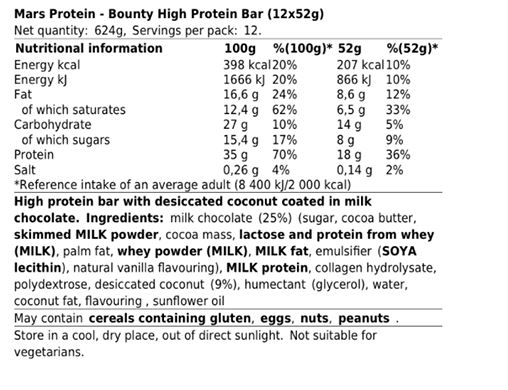 Mars Bounty High Protein Bar 52g