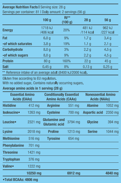 - Εκ των οποίων τα 4,8 g είναι BCAA