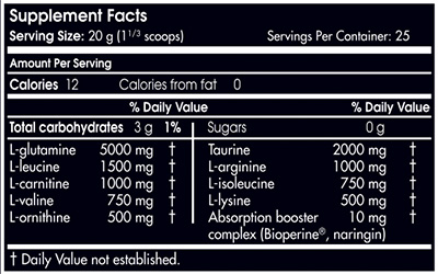 Το Amino Magic περιλαμβάνει τα ουσιώδες Διακλαδισμένης Αλυσίδας Αμινοξέα (BCAA), Γλουταμίνη, Νιτρικό οξείδιο (ΝΟ) πρόδρομος Αργινίνης, Λυσίνη, Ορνιθίνη,Ταυρίνη με το παράγωγο αμινοξύ L-Καρνιτίνη.