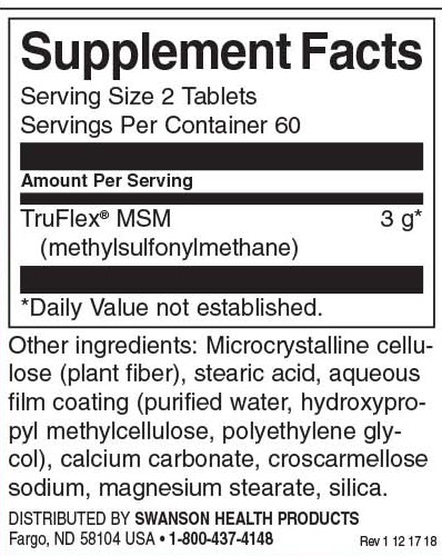 Τα δισκία Swanson MSM παρέχουν 1500mg βιολογικά ενεργού MSM για εύκολη αφομοίωση:
