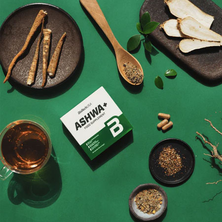 BioTech USA Ashwa+ takes its name from Withania somnifera, better known as Ashwagandha, also known as Indian ginseng. It is one of the main plants of Ayurveda, its extract, which is the lactone, can be used for various purposes. Additional ingredients include Korean ginseng, more specifically Panax ginseng, and the active ingredient extracted from its root is ginsenoside, which is a saponin. Last but not least, it also contains green tea leaf extract and its active ingredients, including polyphenols, including EGCG (epigallocatechin gallate), a catechin.