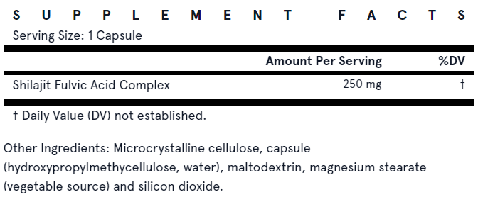 • 250mg Shilajit Fulvic Acid Complex ανά κάψουλα.