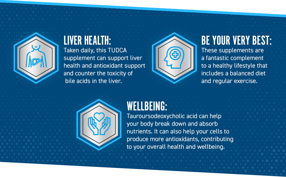 Τα χολικά άλατα που περιέχει το Tudca είναι υδατοδιαλυτά και βρίσκονται φυσικά στο σώμα σε ίχνη. Δεν είναι δυνατό να απορροφηθεί το Tudca από τα τρόφιμα, επομένως τα συμπληρώματα μπορεί να είναι πολύτιμα για τη χρήση χολικών αλάτων Tudca για τη βελτίωση της υγείας του ήπατος. Το ταυροσδεοξυχολικό οξύ μπορεί να βοηθήσει το σώμα σας να διασπάσει και να απορροφήσει τα θρεπτικά συστατικά. Μπορεί επίσης να βοηθήσει τα κύτταρα σας να παράγουν περισσότερα αντιοξειδωτικά, συμβάλλοντας στη συνολική υγεία και ευεξία σας.