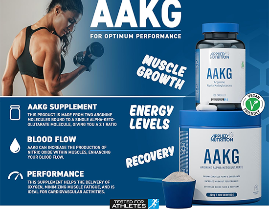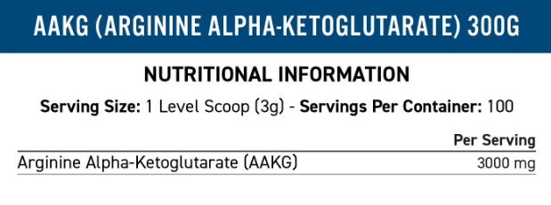 Η άλφα-κετογλουταρική αργινίνη (2:1) είναι μια ζωτικής σημασίας οργανική ένωση που αποτελεί ουσιαστικό μέρος του κύκλου του μονοξειδίου του αζώτου το οποίο αυξάνει τη ροή του αίματος στους μυς. Το AAKG μπορεί να αυξήσει τα επίπεδα αντοχής και να βελτιώσει τη ροή του αίματος.