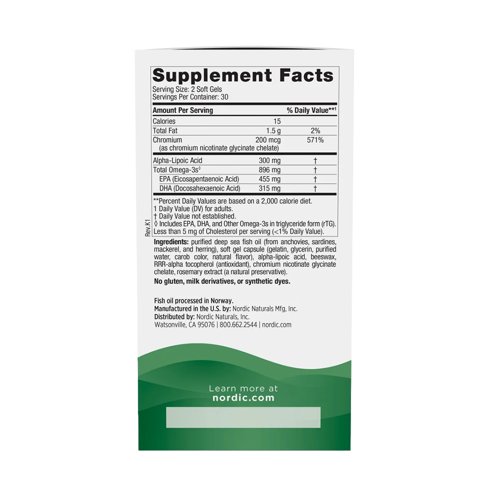 Nordic Naturals Omega Blood Sugar 896mg 60 Softgels