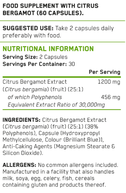Το εκχύλισμα Citrus Bergamot (25:1) της Applied Nutrition προσφέρει 38% πολυφαινόλες, συμβάλλοντας με φυσικό τρόπο στη στήριξη της καρδιαγγειακής λειτουργίας και της γενικής ευεξίας. Προερχόμενο από τον χυμό του φρούτου Citrus bergamia, περιλαμβάνει ισχυρά φυτοθρεπτικά συστατικά, όπως η ναρινγκίνη και η νεοεσπεριδίνη.