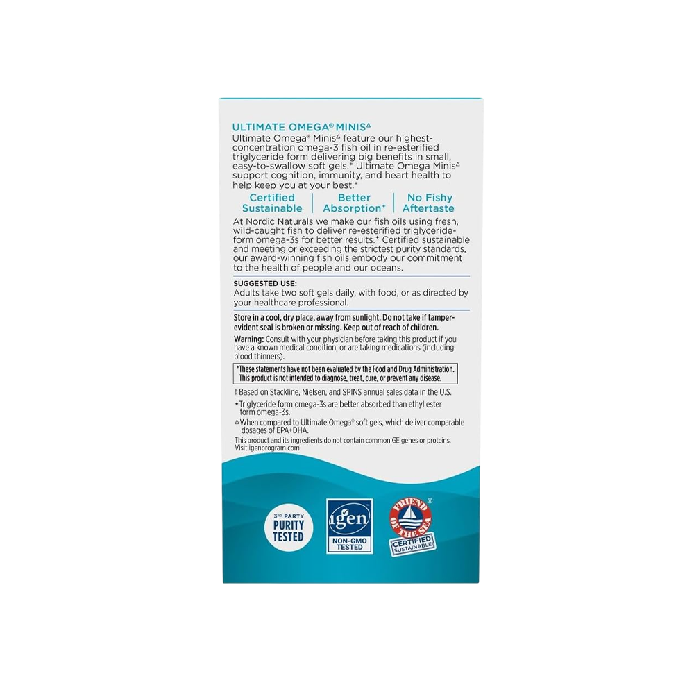 Το Ultimate Omega® Minis συνδυάζει υψηλή περιεκτικότητα σε omega-3 λιπαρά οξέα EPA και DHA σε δύο μικρά, εύκολα στην κατάποση softgels με ευχάριστη γεύση φράουλας.