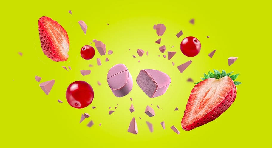 Creatine monohydrate 43%, bulking agent (isomalt), colouring food concentrate [maltodextrin, beetroot concentrate, acid (citric acid)], flavourings, strawberry powder 3.7%, anti-caking agents (magnesium salts of fatty acids, silicon dioxide), acid (citric acid), sweetener (sucralose).