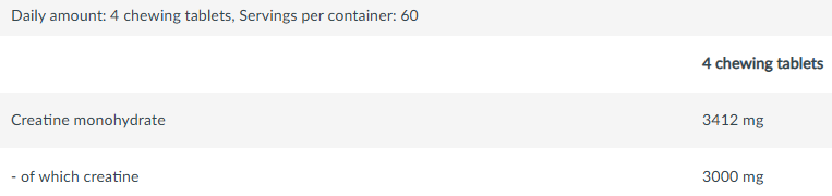 Η Biotech USA Creatine Candy προσφέρει 3 γραμμάρια κρεατίνης, μέσα από τέσσερα μασώμενα δισκία τα οποία μπορούν να καταναλωθούν οποιαδήποτε στιγμή μέσα στη ημέρα. Μια μικρή, γευστική συνήθεια που ενσωματώνεται διακριτικά στην καθημερινότητα και υποστηρίζει την προσπάθεια για καλύτερη απόδοση.
