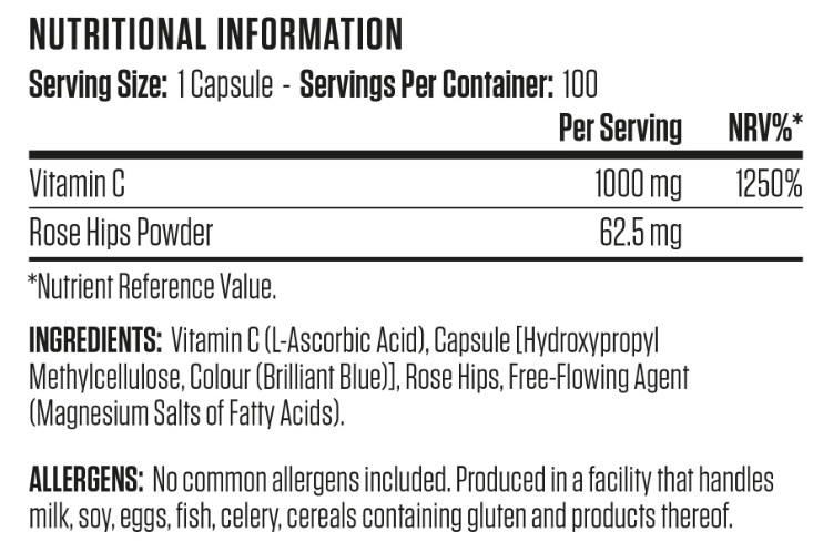 Η Vitamin C είναι μια απαραίτητη, υδατοδιαλυτή βιταμίνη με πολλαπλές λειτουργίες στον ανθρώπινο οργανισμό, με κυριότερη δράση την ισχυρή αντιοξειδωτική προστασία. Ενισχυμένη με Rose Hips (καρπούς αγριοτριανταφυλλιάς), η φόρμουλα αυτή παρέχει διπλή υποστήριξη στο ανοσοποιητικό σύστημα, συμβάλλοντας παράλληλα στη μείωση της κόπωσης και στην προστασία από το οξειδωτικό στρες.