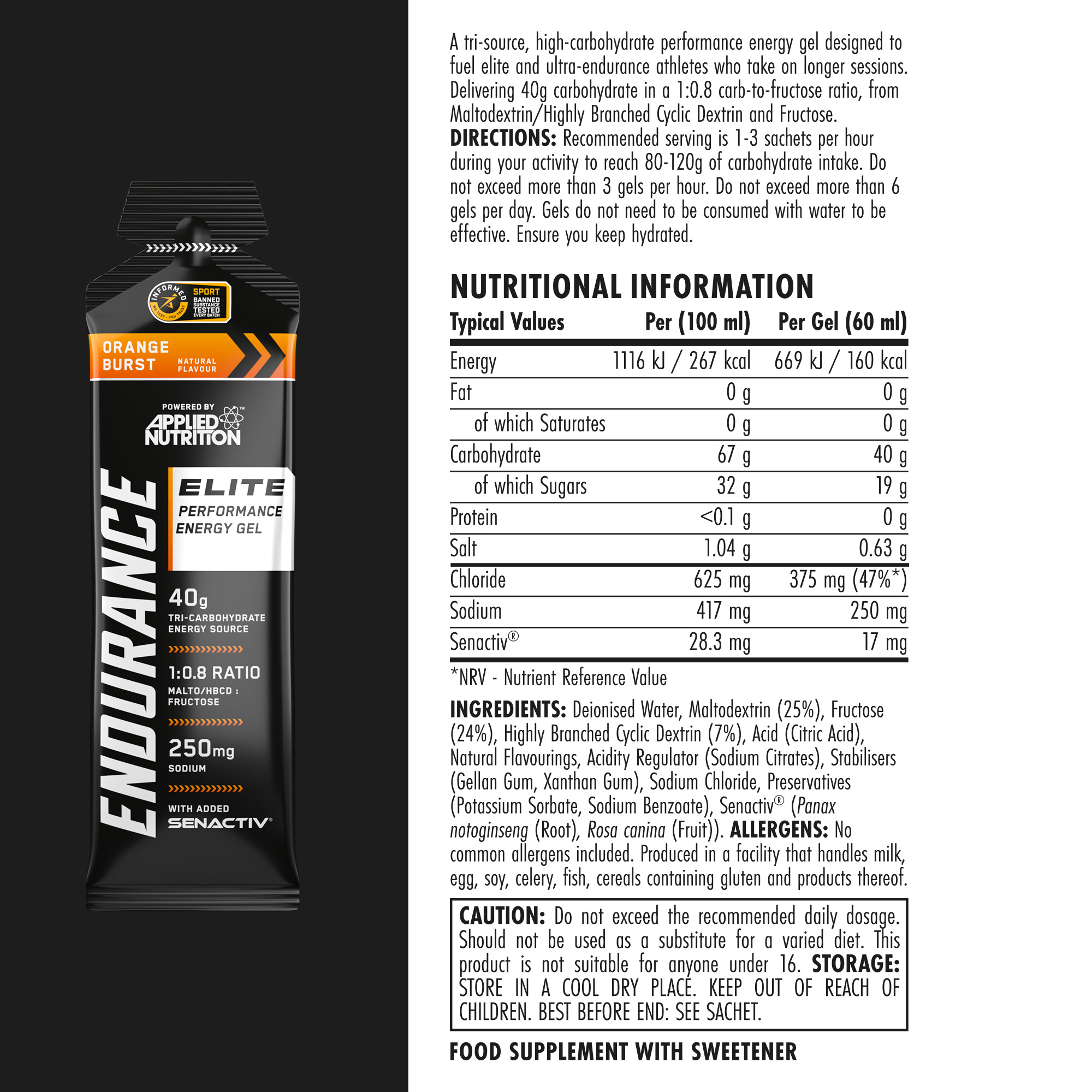 Applied Nutrition Endurance Elite Performance Energy Gel 60ml