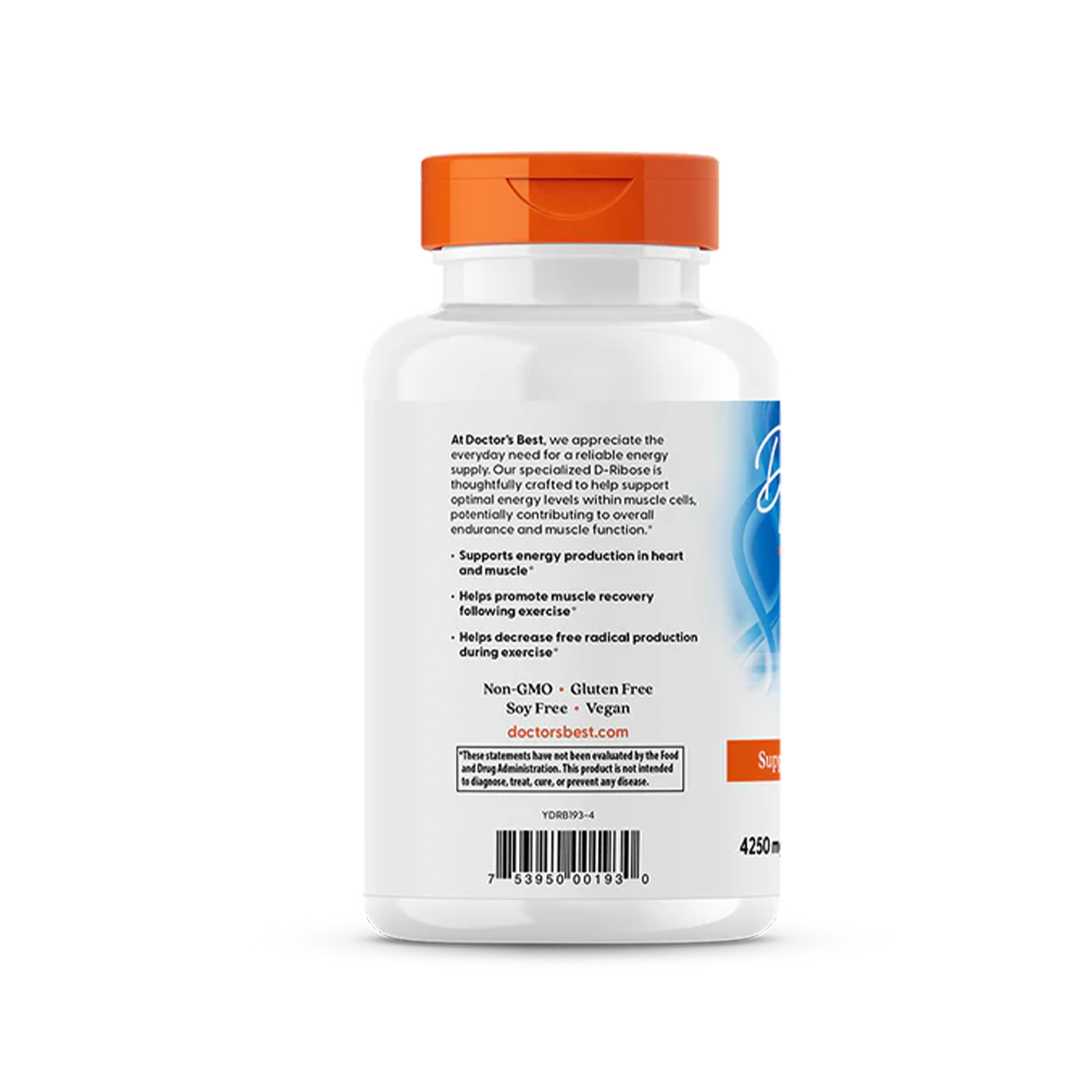Η Doctor’s Best εστιάζει στην κάλυψη των καθημερινών αναγκών του σώματος για αξιόπιστη παροχή ενέργειας, ιδιαίτερα μέσα στα μυϊκά κύτταρα. Το Doctor’s Best D-Ribose είναι πλήρως απαλλαγμένο από γενετικά τροποποιημένους οργανισμούς (Non-GMO), γλουτένη και σόγια, ενώ η φυτική προέλευση των καψουλών το καθιστά κατάλληλο για άτομα που ακολουθούν vegan διατροφή.