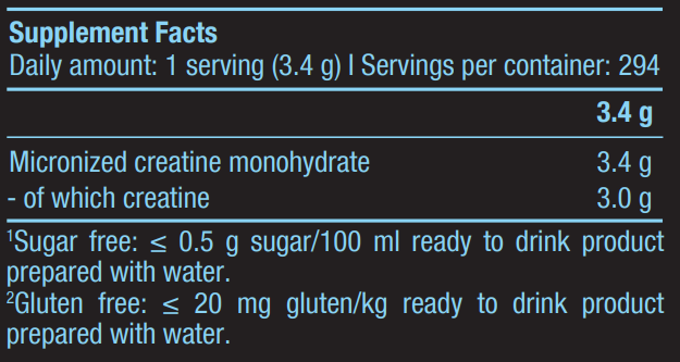 Η σύνθεση του αποτελείται από 100% καθαρή μονοϋδρική κρεατίνη σε μικροϊονισμένη μορφή (micronized). Η διαδικασία αυτή μειώνει το μέγεθος των σωματιδίων, εξασφαλίζοντας βέλτιστη διαλυτότητα στο νερό και ταχύτερη απορρόφηση από τον οργανισμό. Παράλληλα, η συγκεκριμένη μορφή μειώνει τις πιθανότητες εμφάνισης γαστρεντερικών ενοχλήσεων, βελτιώνοντας τη βιολογική αξιοποίηση του συστατικού από το μυϊκό σύστημα.
