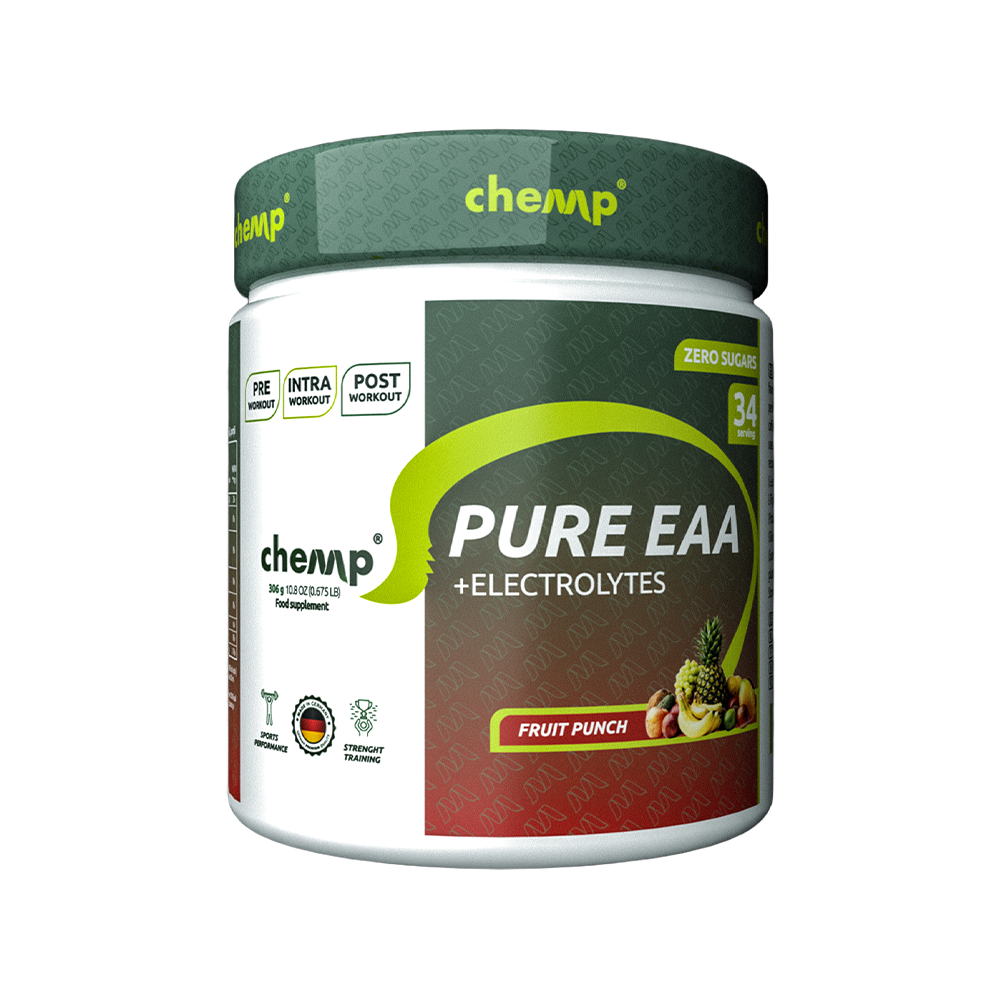 Συνδυάζοντας ένα πλήρες φάσμα Απαραίτητων Αμινοξέων (EAAs) με ένα εξειδικευμένο μείγμα ηλεκτρολυτών, το Chemp Pure EAA+ Electrolytes συμβάλλει στη διατήρηση των επιπέδων ενέργειας, της συγκέντρωσης και της ενυδάτωσης κατά τη διάρκεια κάθε προπόνησης ή απαιτητικής ημέρας. Είτε πρόκειται για άρση βαρών, τρέξιμο, ή γενική βελτίωση της φυσικής κατάστασης, το Chemp Pure EAA + Electrolytes λειτουργεί ως ο ιδανικός σύμμαχος, προσφέροντας σταθερή υποστήριξη χωρίς απότομες πτώσεις ενέργειας και χωρίς περιττά πρόσθετα υλικά.