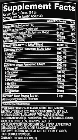 Το Mutant Geaar αποτελεί μια κορυφαία και ασυμβίβαστη επιλογή στην κατηγορία των απαραίτητων αμινοξέων (EAAs) προσφέροντας ένα πλήρες προφίλ αμινοξέων σε συνδυασμό με εξειδικευμένη φόρμουλα ενυδάτωσης.