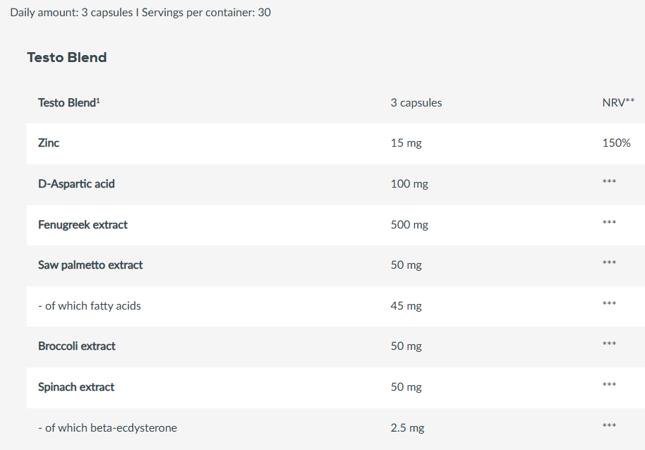 It contains 24 active ingredients, such as caffeine, D-aspartic acid (DAA), coenzyme Q10, vitamins and minerals, offering a multidimensional approach to naturally enhancing performance and well-being.