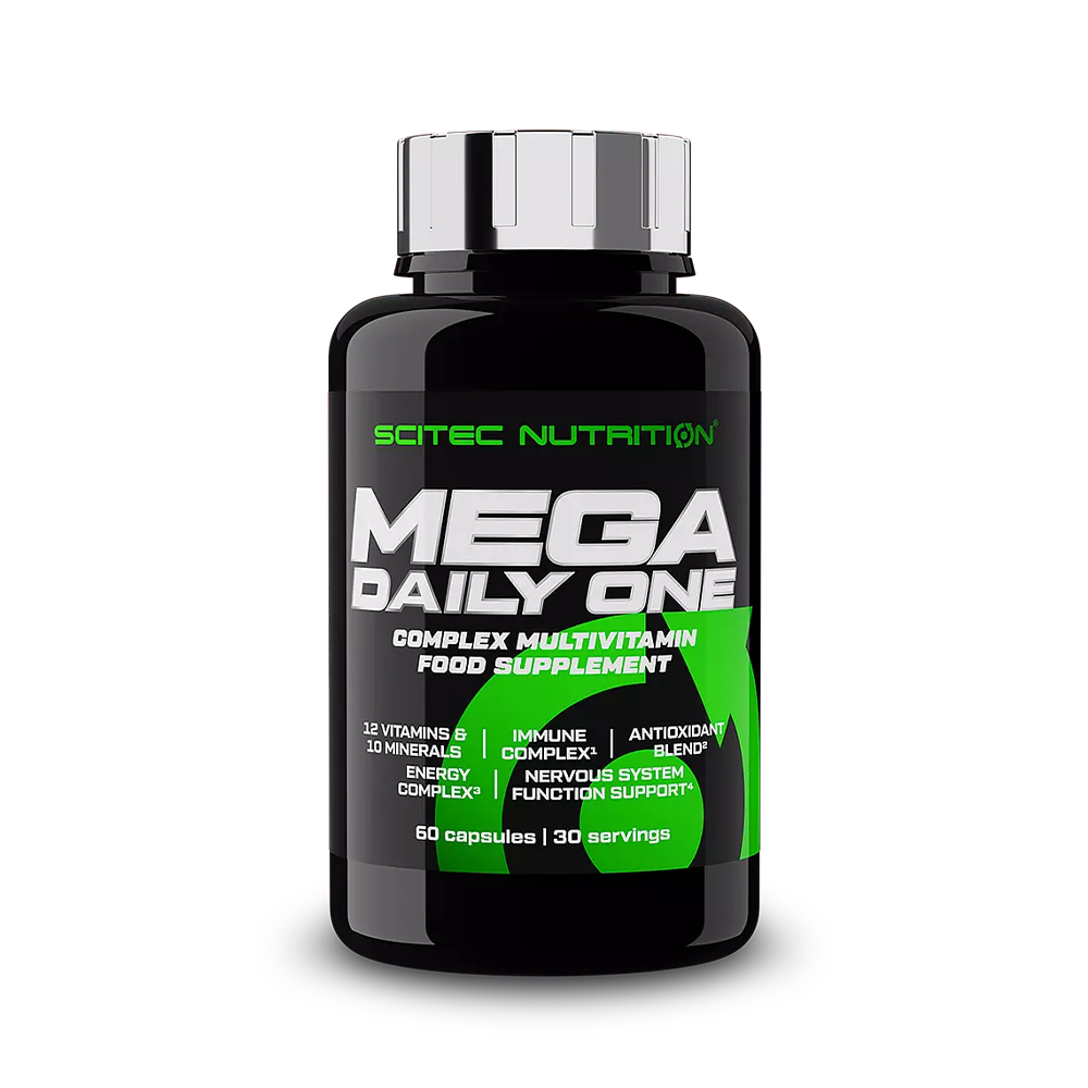 Το Mega Daily One της Scitec Nutrition πρόκειται για πολυβιταμίνη η οποία περιέχει 26 δραστικά συστατικά, περιλαμβάνοντας 12 βιταμίνες και 10 μέταλλα, σχεδιασμένο για την υποστήριξη του ανοσοποιητικού συστήματος, την ενίσχυση της ενέργειας και τη στήριξη της λειτουργίας του νευρικού συστήματος. Η σύνθεση του προϊόντος επισημαίνει την πολυλειτουργικότητα του, προσφέροντας αντιοξειδωτική προστασία και υποστηρίζοντας τη φυσιολογική λειτουργία βασικών σωματικών διαδικασιών. Συστήνεται για άνδρες και γυναίκες που επιθυμούν να συμπληρώσουν τη διατροφή τους με βιταμίνες και μέταλλα, προάγοντας τη συνολική υγεία και ευημερία.