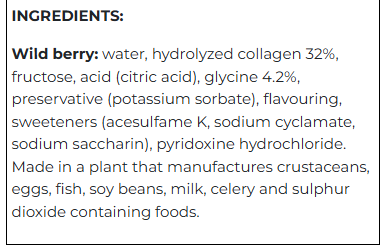 Collagen Liquid contains collagen in hydrolyzed form. During the hydrolysis process, the larger collagen molecules are broken down into smaller units, peptides, accompanied by water absorption. The product also contains vitamin B6, which is involved in the normal metabolism of proteins and glycogen and in normal metabolic processes that produce energy and contributes to the normal functioning of the immune system and the reduction of tiredness and fatigue.