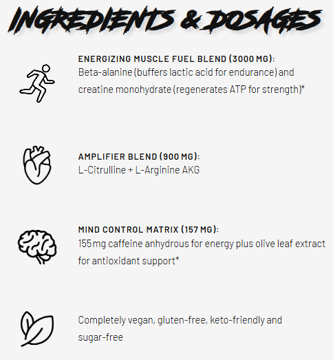 - Περιέχει 155mg άνυδρης καφεΐνης, η οποία διεγείρει το κεντρικό νευρικό σύστημα, προσφέροντας ένταση μεγάλης διάρκειας χωρίς την απότομη πτώση μετά την προπόνηση.