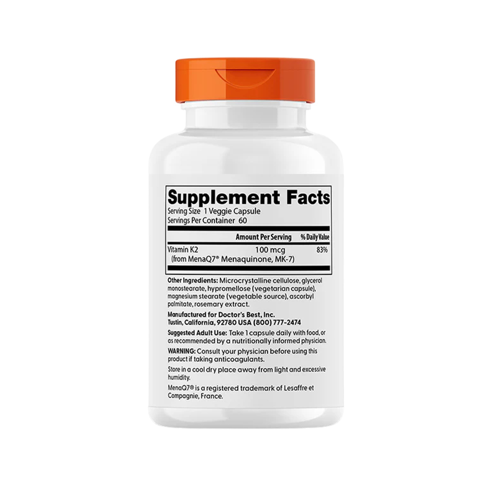 Doctors Best Natural Vitamin K2 MK7 with MenaQ7 100mcg 60 VcapsDoctors Best Natural Vitamin K2 MK7 with MenaQ7 100mcg 60 Vcaps